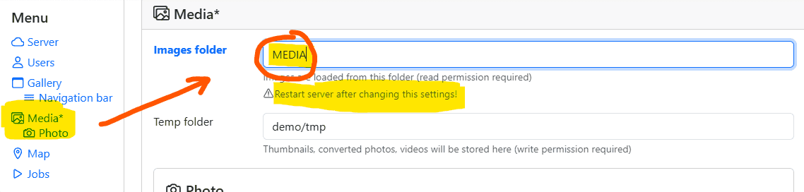 ln -s $HOME/mediafiles MEDIAIn PiGallery settings, Media, enter to Image Folder: MEDIA. Then