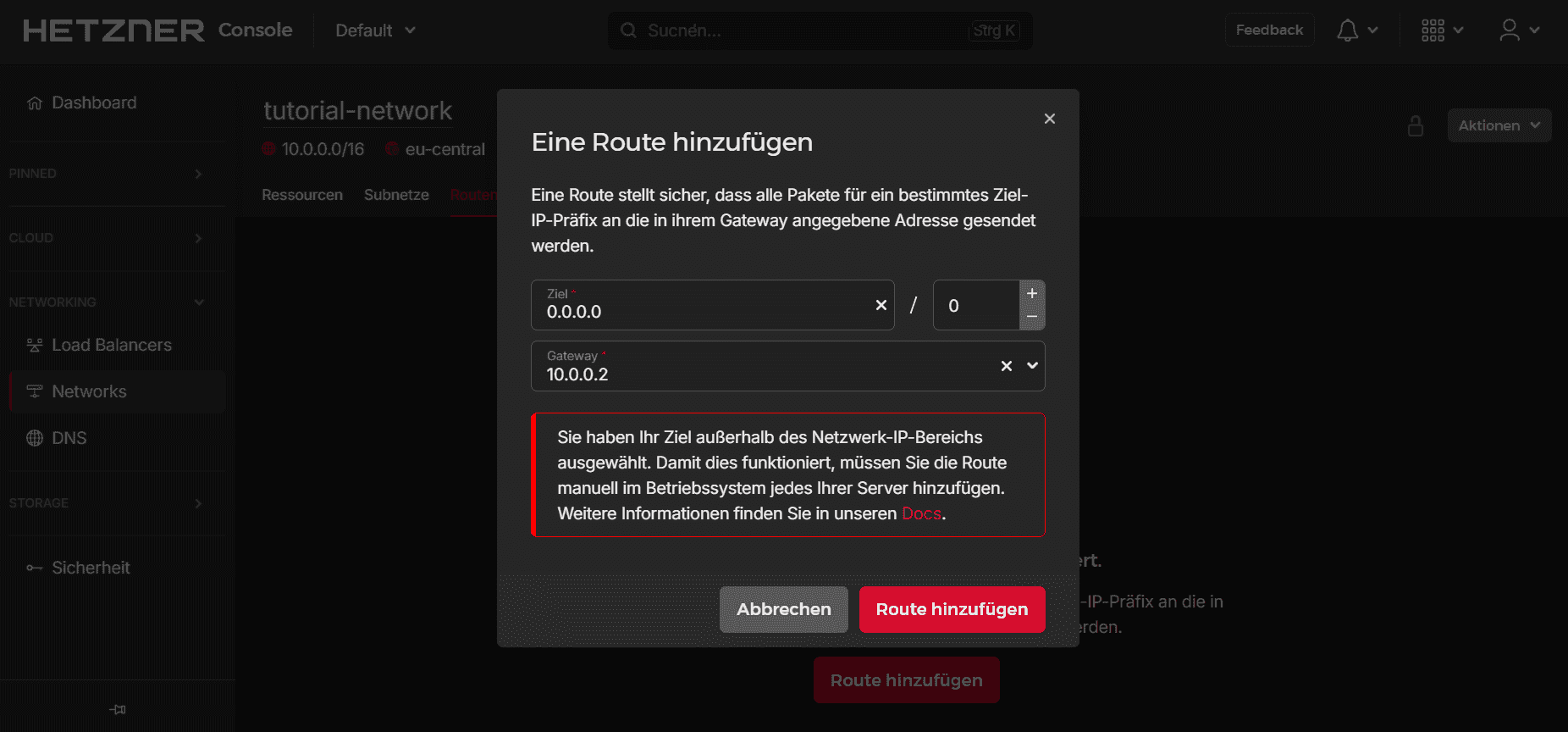 Schritt 2 - Dem Netzwerk eine Route hinzufügen