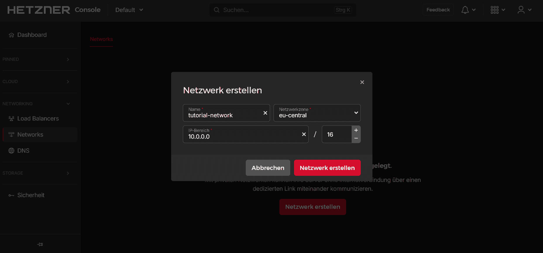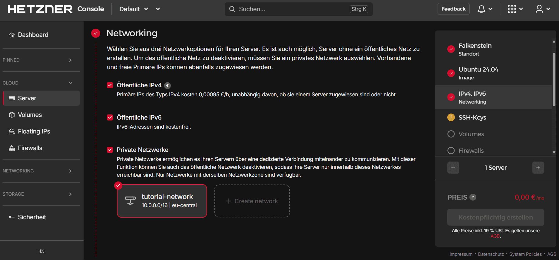 Sie können Ihr Network entweder zuerst erstellen oder alternativ im Erstellungsprozess Ihres Server.