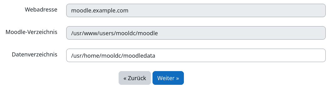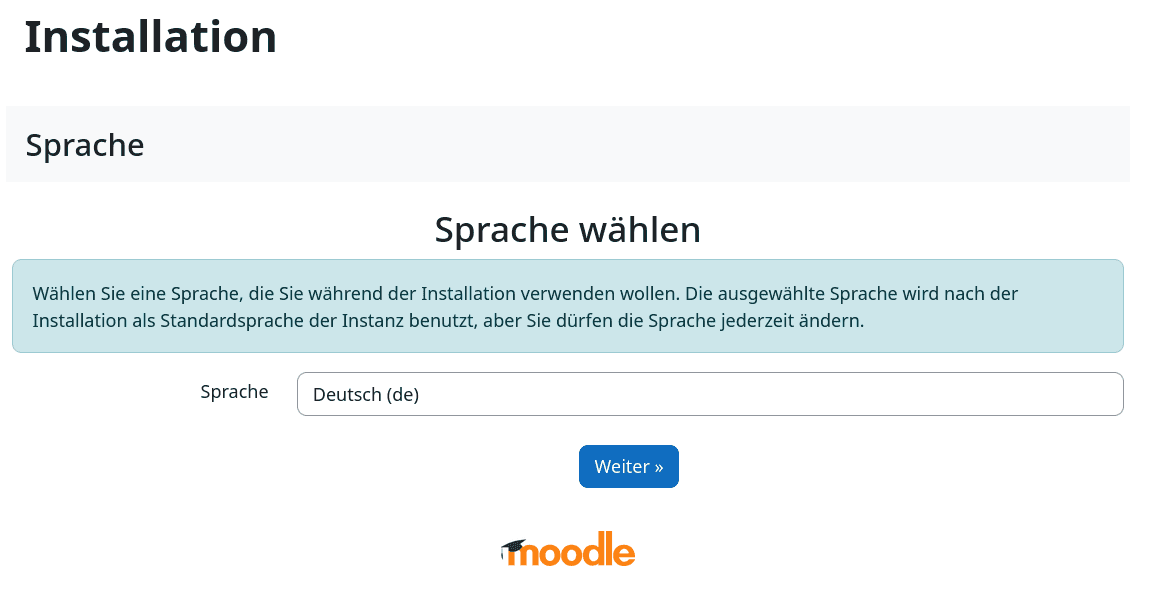 ). Dort sollte die Installationsseite für Moodle angezeigt werden.