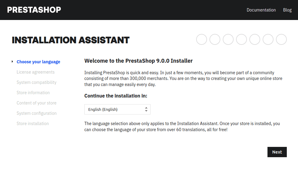 In your browser, navigate to the domain address where you uploaded the PrestaShop files