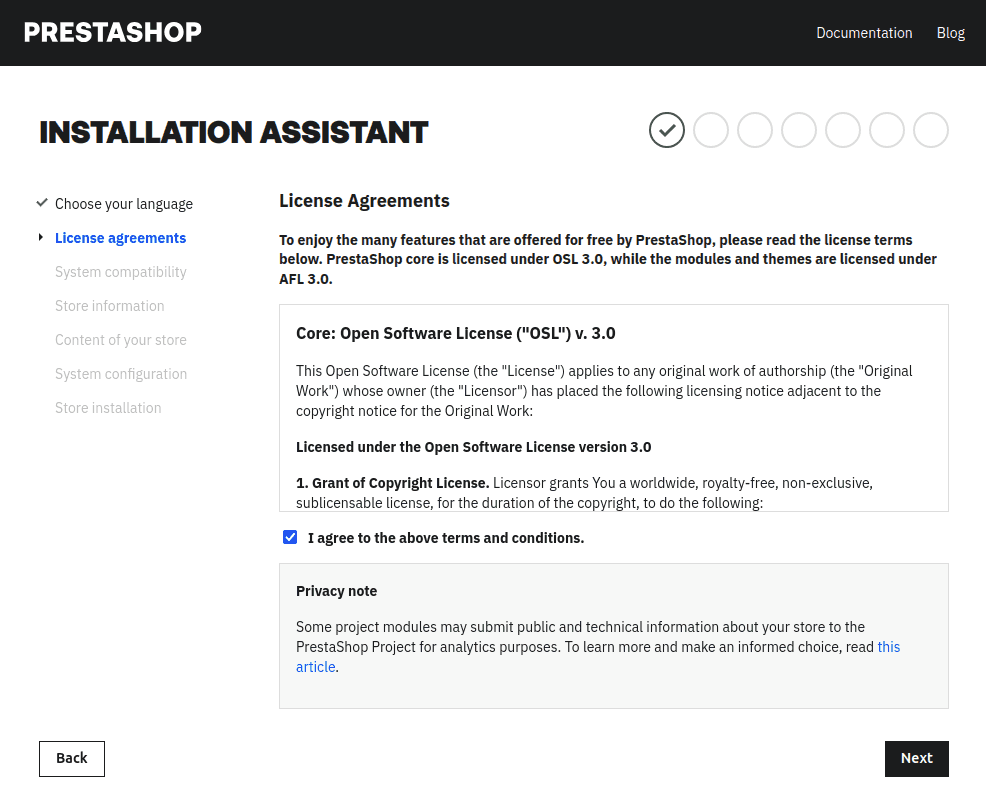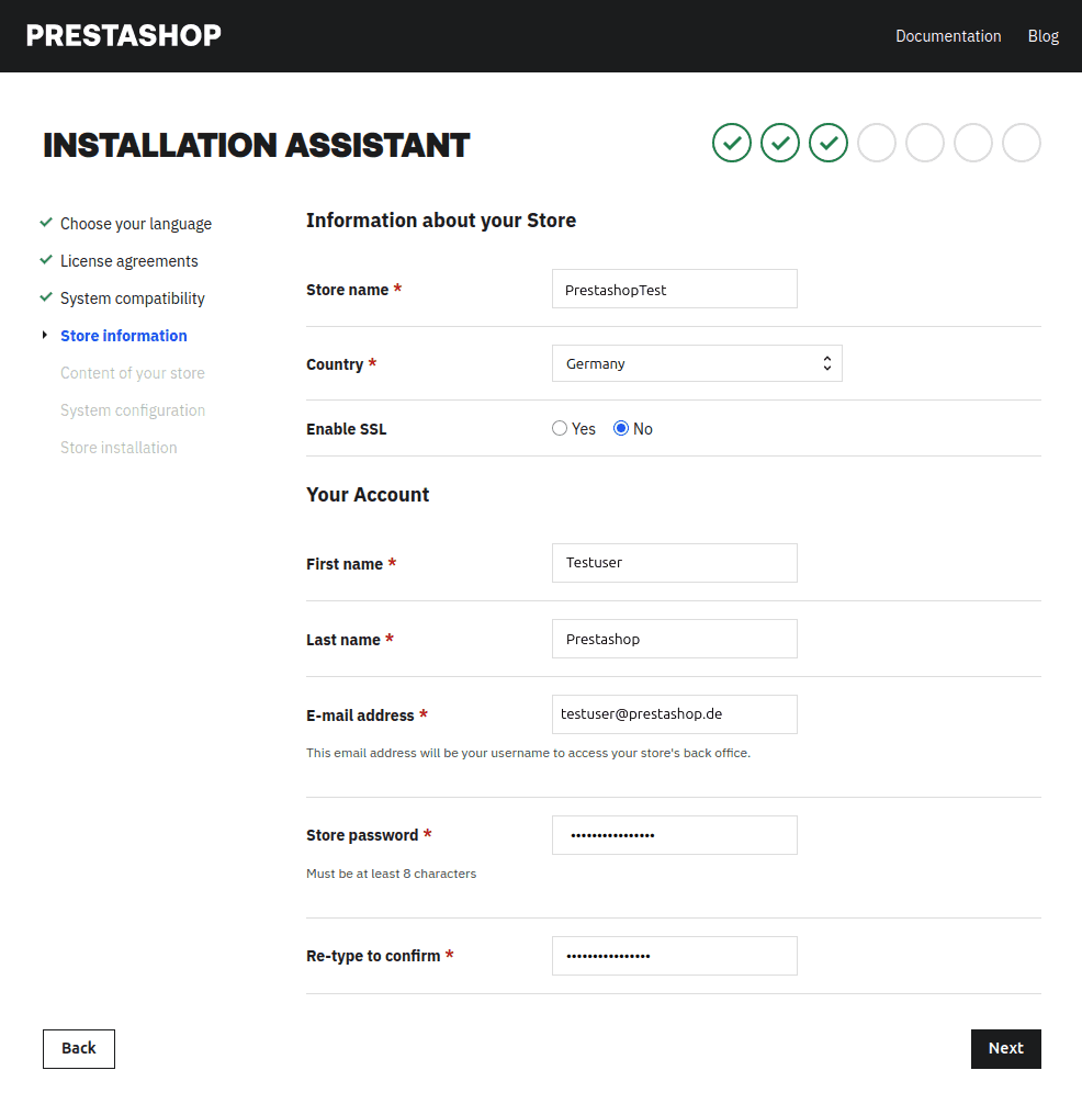 Now you can continue with the installation of PrestaShop as described in step 3.