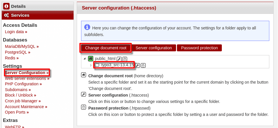 . - Click on "Change document root"