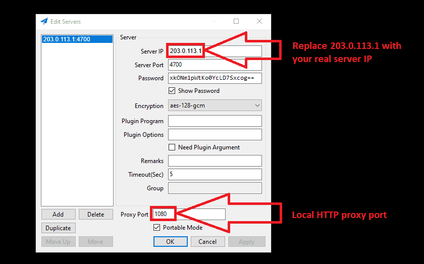 This picture shows you how to set up the config and test your load balancer via the Shadowsocks local HTTP
