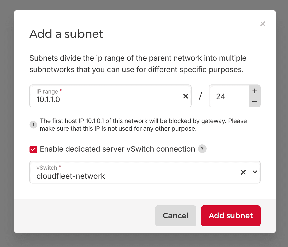 - Click Add subnet