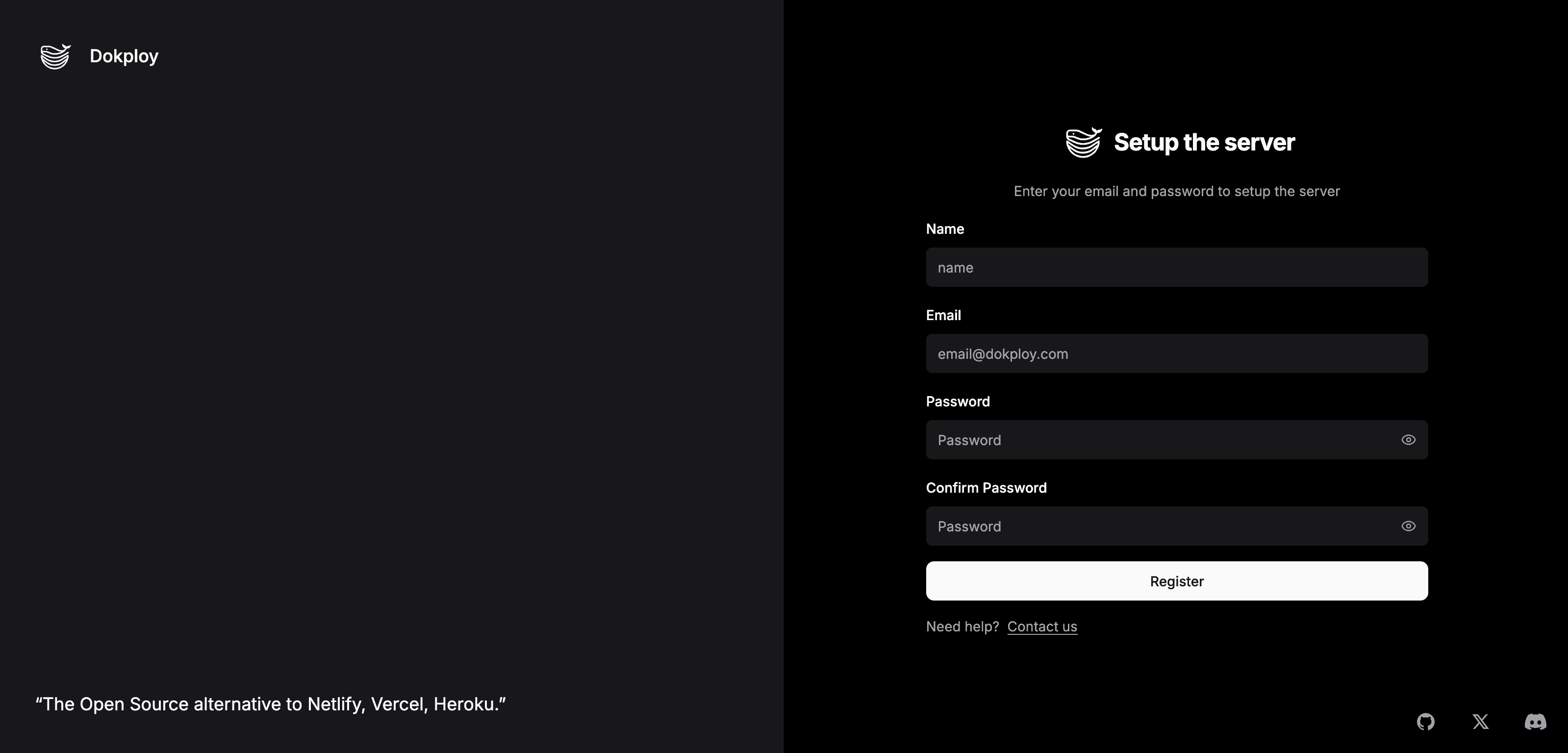 After submitting the form, you'll be automatically signed in to your new Dokploy dashboard.