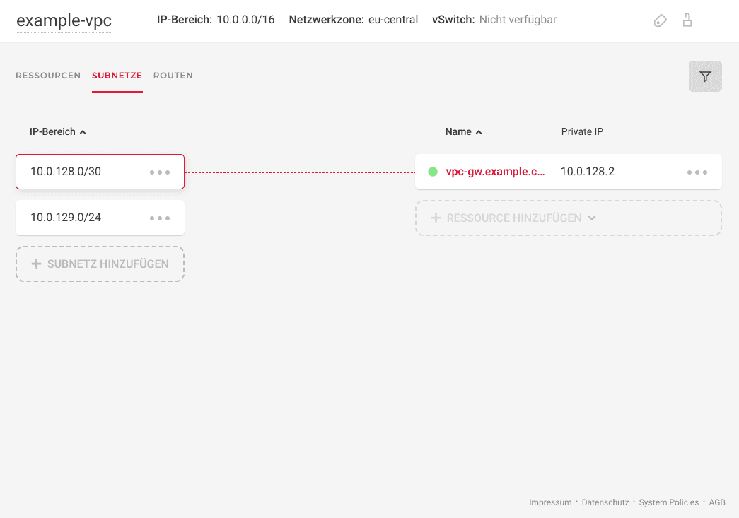 <10.0.128.0/17>The network segment used for VPC (Hetzner Cloud) of Example Corp