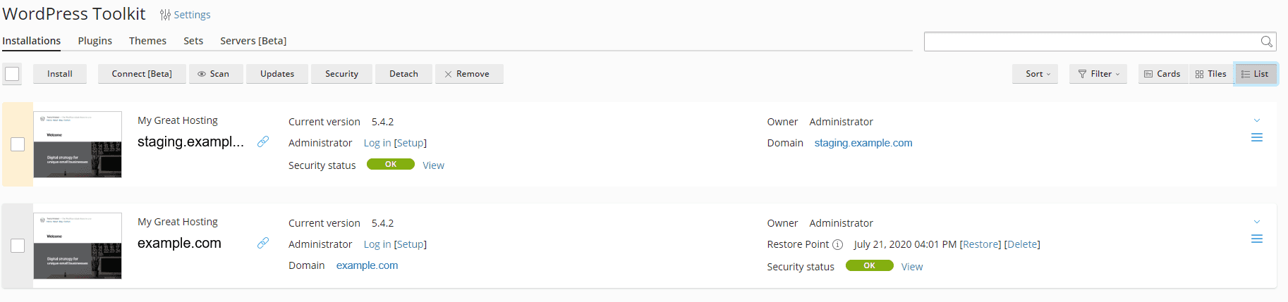 In this tutorial we are looking at how to install and manage WordPress pages with the help of the Plesk WordPress Toolkit. I will describe how to install the WordPress Toolkit, install a WordPress website, update it and activate auto updates, create a staging instance and how to synchronize it back to the production page.